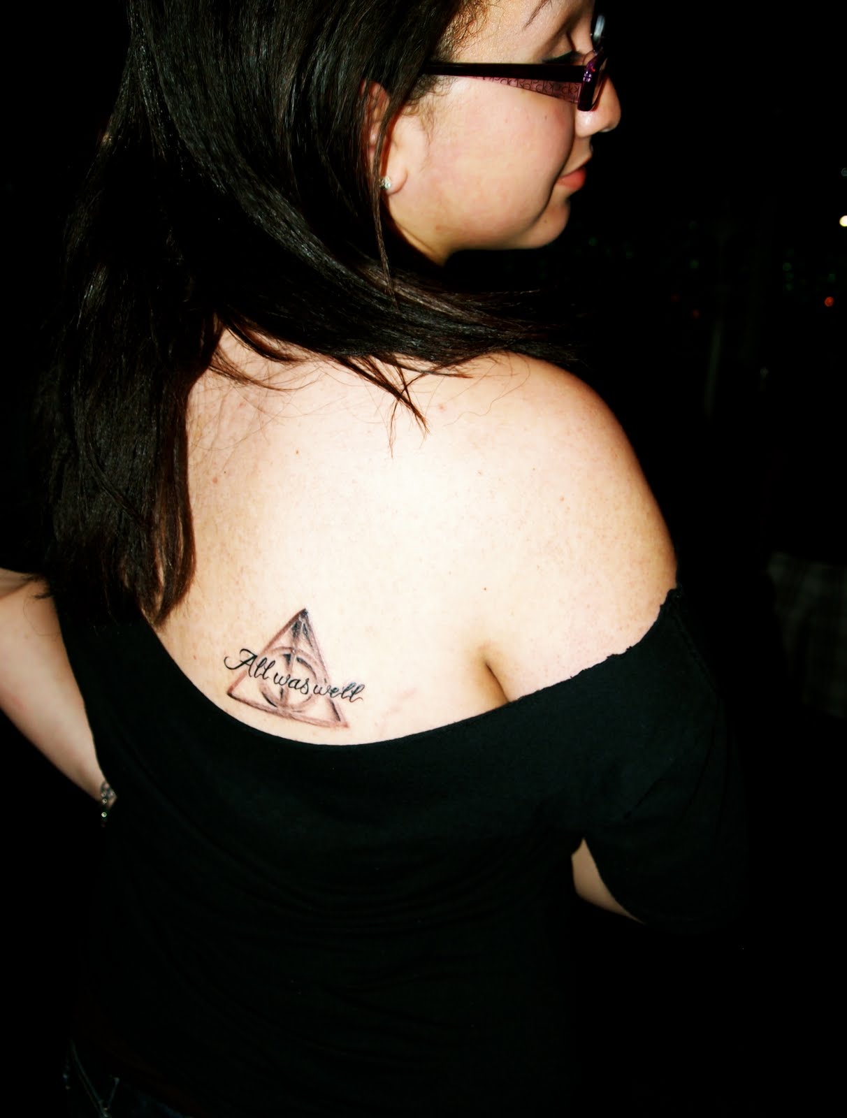 I chose that because I was making an adult decision to get a piece of my childhood permanently inked on me. "All was well" marks the ending of Harry Potter, and the ending of my childhood because I'm *officially* not a teenager anymore.